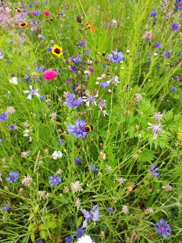 En plus du potager, un espace a été dédié à “une prairie”. Non seulement pour expérimenter les effets du compost sur les fleurs, mais aussi créer un espace de plus où insectes et autres membres de la famille Biodiversité peuvent se développer.